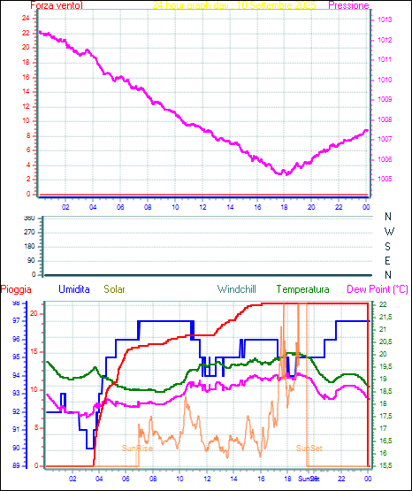 Barómetro minima = 1005.3 hPa giorno 10 tempo 18:28
